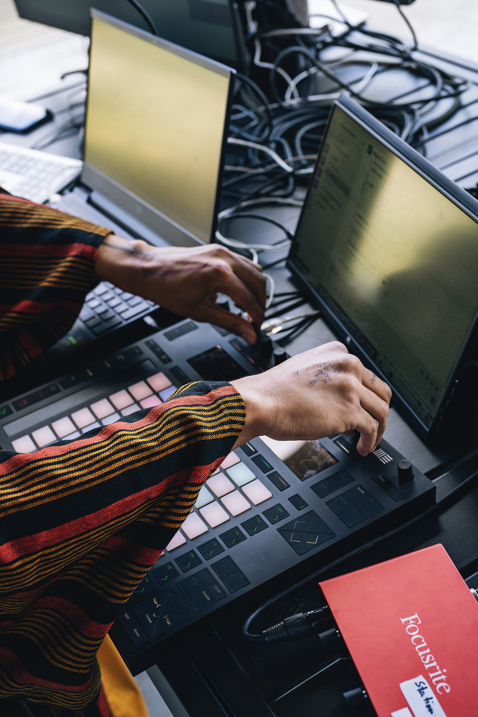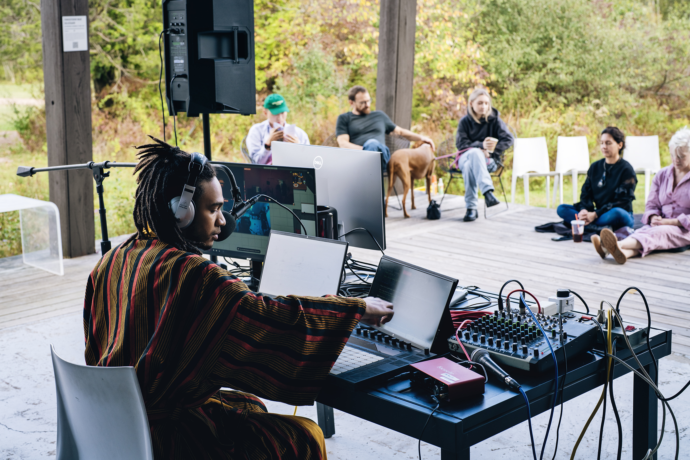 The project was an innovative live docu-fictional radio play and Arkestral tele-performance that unfolded the narrative of the (fictional) inter-dimensional ansible, I.D.A., and the genesis of the (real) ANANSI Revolutionary Collective. Envisioned as a global collaboration, musicians, sound artists, and writers synchronized from diverse locations using low-latency audio transfer technology. This interdisciplinary telematic performance transcended physical distances, creating a shared experience for a global audience. SUNJIR0 (Kadallah) anchored the project on-site at Wave Farm while connected with artists in Nairobi, Kenya and Amsterdam, Netherlands.